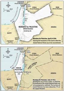 Mme Chaulin a raison d’évoquer la conférence de San Remo (1920) et le mandat britannique (1922). Mais elle omet de mentionner qu’a lieu cette année-là le premier partage de la Palestine opéré par les Anglais au bénéfice de l’émir Abdallah, lequel conduit à priver la Palestine historique (les deux rives du Jourdain) des ¾ de son territoire, et ce afin d’édifier à l’est du fleuve un émirat artificiel peuplé d’environ 250 000 Bédouins. En réduisant la Palestine à l’équivalent d’à peine quatre départements français (en tout, 27 000 km²), les Anglais vont contribuer à rendre le conflit insoluble.